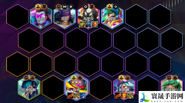 1、阵容组成:库奇、盖伦、瑟提、锐雯、厄斐琉斯、凯特琳、伊泽瑞尔