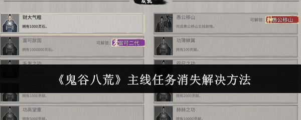鬼谷八荒主线任务消失怎么办?不少玩家在游戏过程中会发现主线任务突然“消失”,无法继续推进。这种情况往往并非游戏的缺陷,而是与任务的触发条件、修为进度以及隐藏事件密切相关。