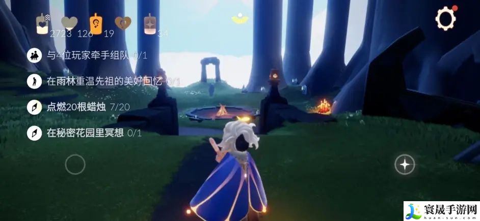 3、今天重温先祖任务在雨林荧光图左侧亭子,点燃触碰所有节点即可完成任务;
