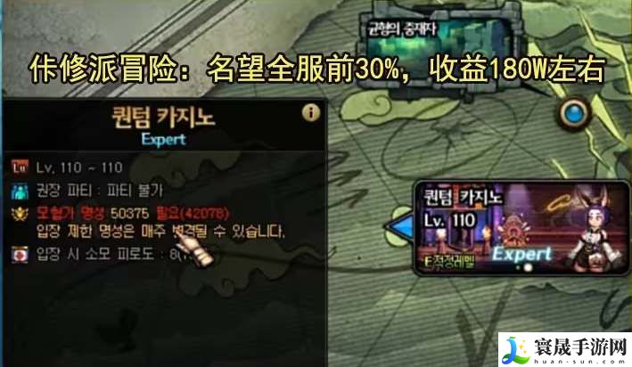 需要前30%名望,韩服当前名望要求50375。收益方面满疲劳、装备、加百利等大约在180万左右。