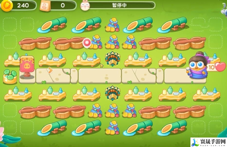1、首先这是一条路的关卡,玩家在中间上下两个空位上放上弓箭。