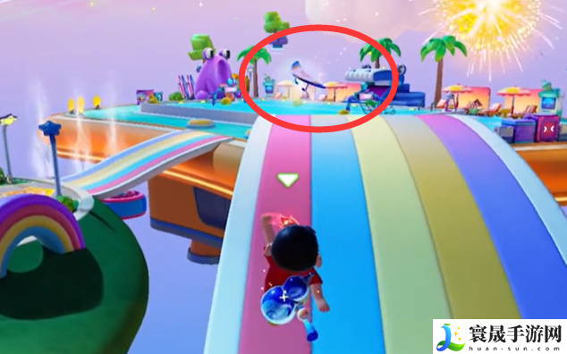 3、到达下图的位置飞行跳到降落到红包雨上;