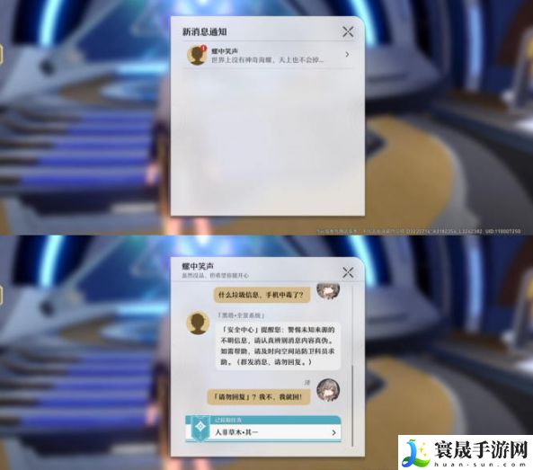 2、从对话可以得知,奇物“螺中笑声”感染了病毒,才会发送那种毒鸡汤的信息。艾丝妲在排查后,认为是感染了病毒的工作人员在接触中产生了附带传染,并锁定了三个可疑人员。