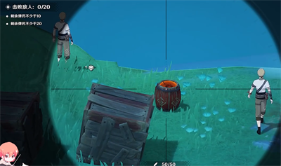1、千步拦射角分间第三关关卡中我们在右侧发现两个炸药桶,等待路上巡逻的这个盗宝团过去,我们射击引爆。