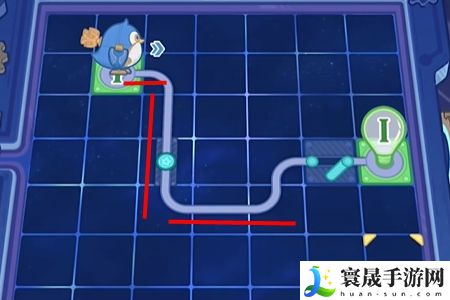 2、在第一关中,玩家可以按照下图中红线的方向的位置去画出线路再连接到右边家中的位置。