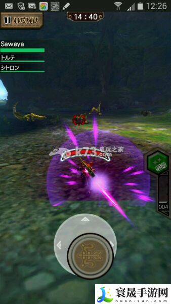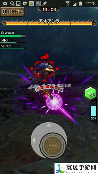 在合适的距离位置时,目标怪物的瞄准标志上会出现4个小箭头,如图。