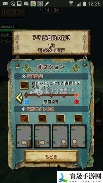 关于回避,这个游戏提供了只用虚拟摇杆就可以进行回避的功能,只是需要自己去打开。在关卡中暂停后从上往下数第四个键,如图中勾选回避设定下面那个方框