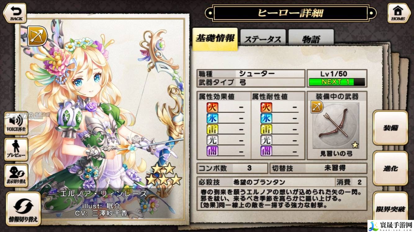 《格林笔记》中花弓被评为与爱丽斯相同实力的5星角,其实只是因为错误观察多只花弓协力时可以一直放招,而给予花弓很强的错觉与偏见。