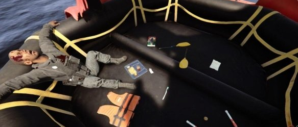 GPS追踪器可以在海面的救生筏上找到,游过去爬上救生筏可以直接拾取。还可以找到手枪。