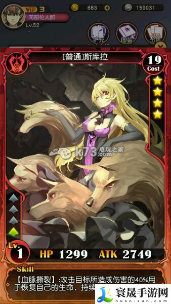魔族卡ATK为血量的一倍,六星以下技能全是吸血和加ATK。以下五张为四星过渡。前四张都是精英就好,斯库拉ATK为四星最强,同样媲美五星,可以等着五星卡替换