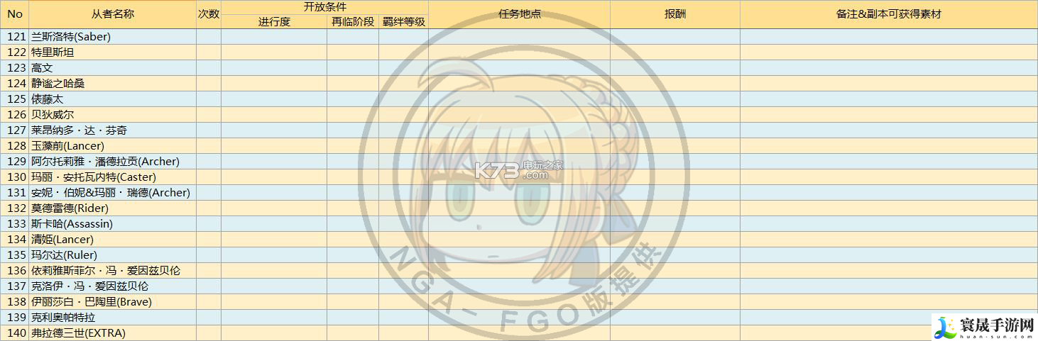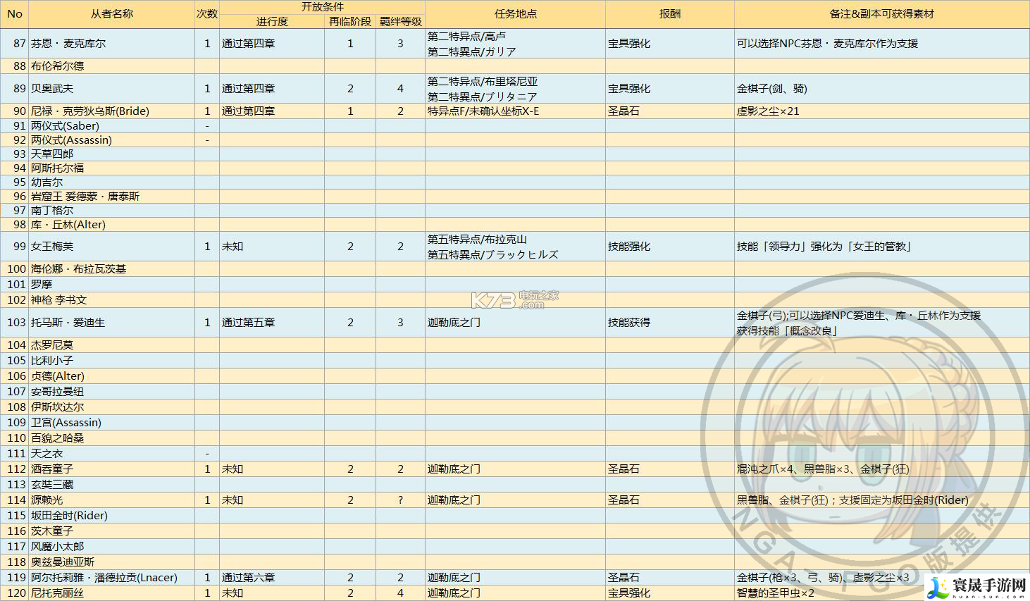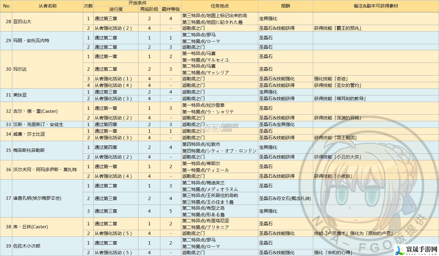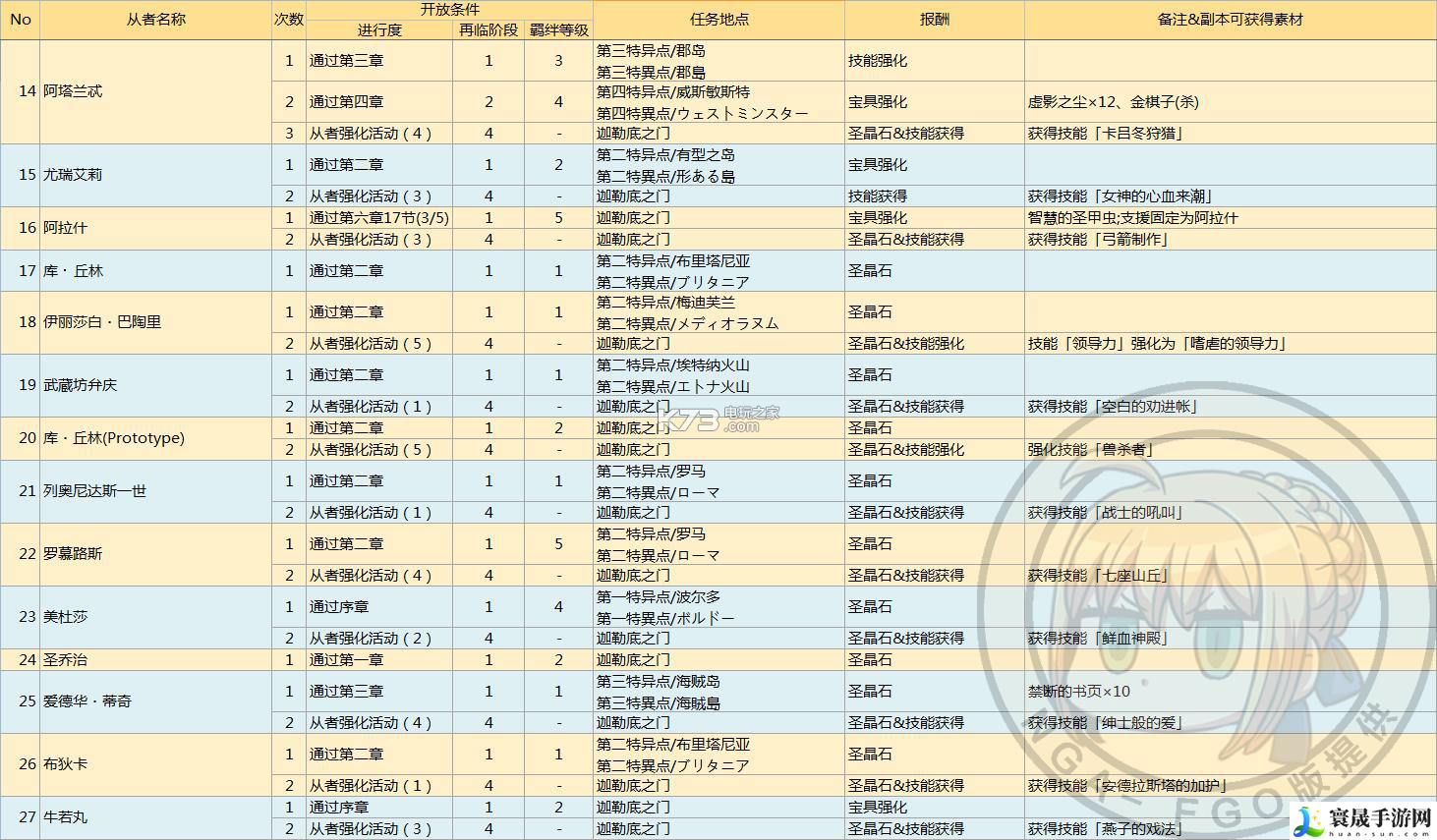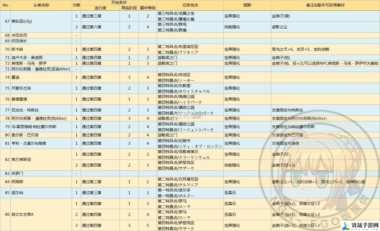 PS3.表格上从者副本开放方式为空的话代表暂时没有相关的副本