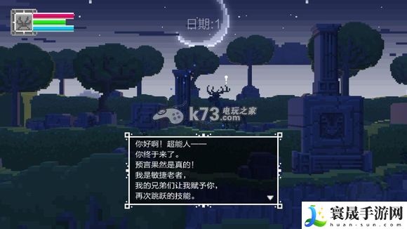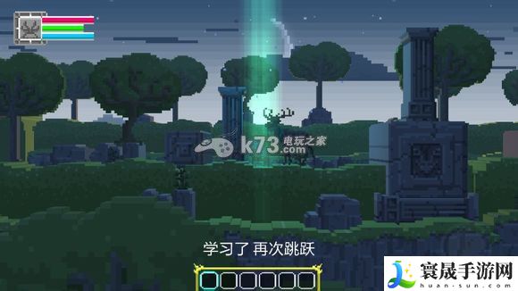 1.游戏开始点左侧山上有复活石,学习二次跳跃后蹦上去吃,点击红条左侧经验框调出物品栏,拖动2个复活石到使用栏,退出物品栏,选中复活石点击屏幕右侧透明图标使用。