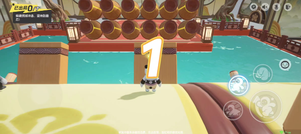 1、游戏开始,迎面而来的是对面12枚炮筒,炮筒会不定期的炮轰绣球,站在平衡木上的小伙伴如若不及时躲避,有被炮轰下水的风险。