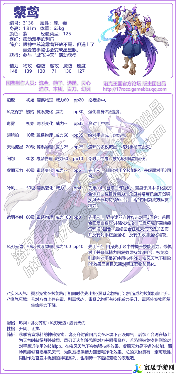 洛克王国-紫鸢技能有哪些-紫鸢技能表图鉴
