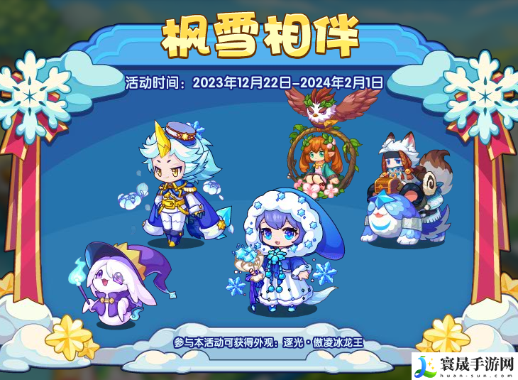 1.洛克王国枫雪相伴活动就是王国里开启了枫雪镇庆典,参加其他活动兑换宠物之后就可以来这里兑换,兑换有傲霜冰龙王外观、名牌、经典装扮哦!