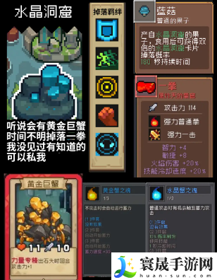 1、一拳:前往到水晶洞窟中刷boss黄金巨蟹来获得一拳武器,boss每周六刷新;