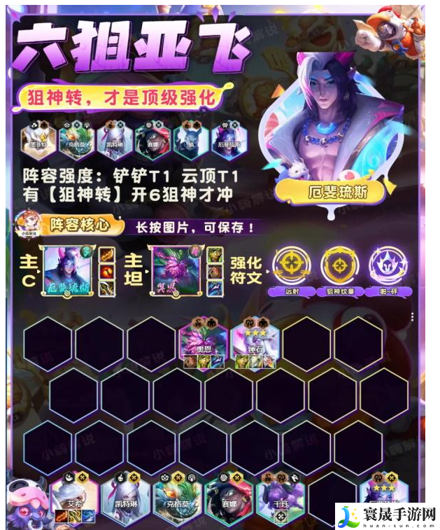 金铲铲之战六狙亚飞阵容怎么搭配好,目前六狙亚飞阵容当前赛季强度也不错的,需要在赛季中选择好运营思路和羁绊等,下面就来介绍下金铲铲之战六狙亚飞阵容怎么玩。