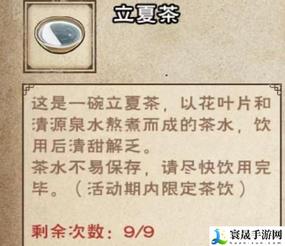 8、注意:立夏茶将于8号23点后过期,建议玩家在获取后及时使用避免失效。