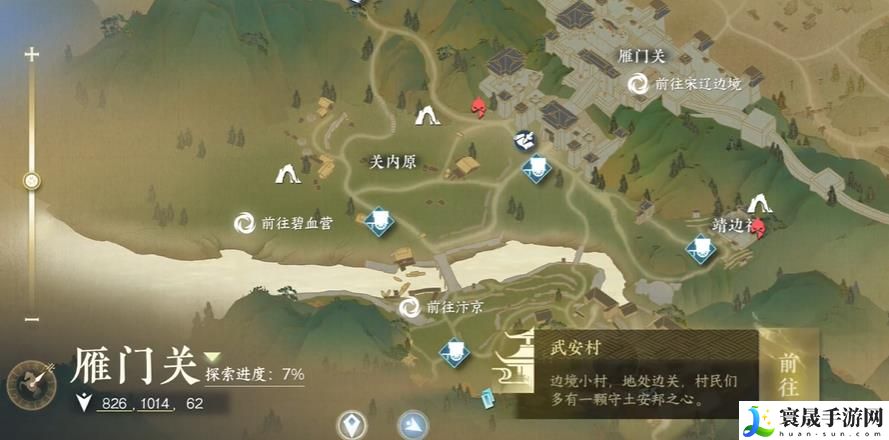 2、接着我们就在对话中得知,老太太思念自己的儿子,就让我们前往到雁门关的位置寻找。