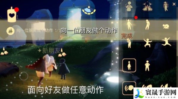 点击屏幕上方中间动作栏 面对好友 随机点击任意动作即可完成