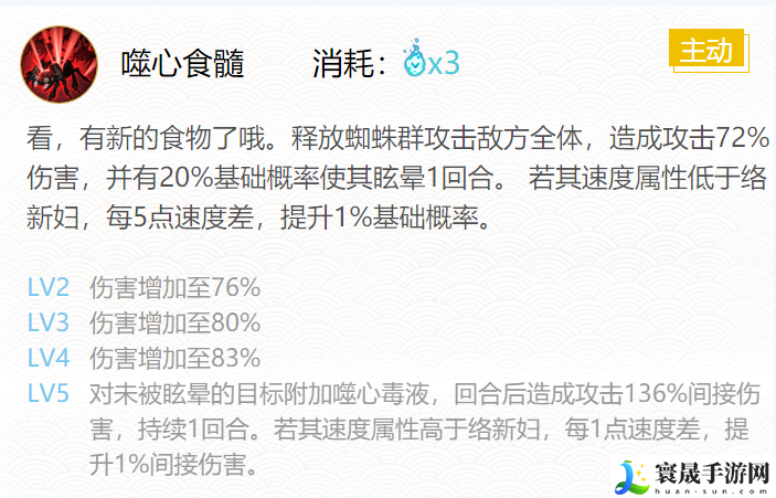 搭配招财供火,控制用,以前络新妇是使游戏失衡的存在,现在几乎没人养了。