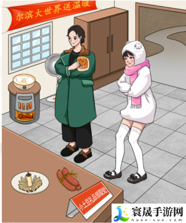 1、第一组:先拖动冻梨给女生,然后拖动腊肠给女生