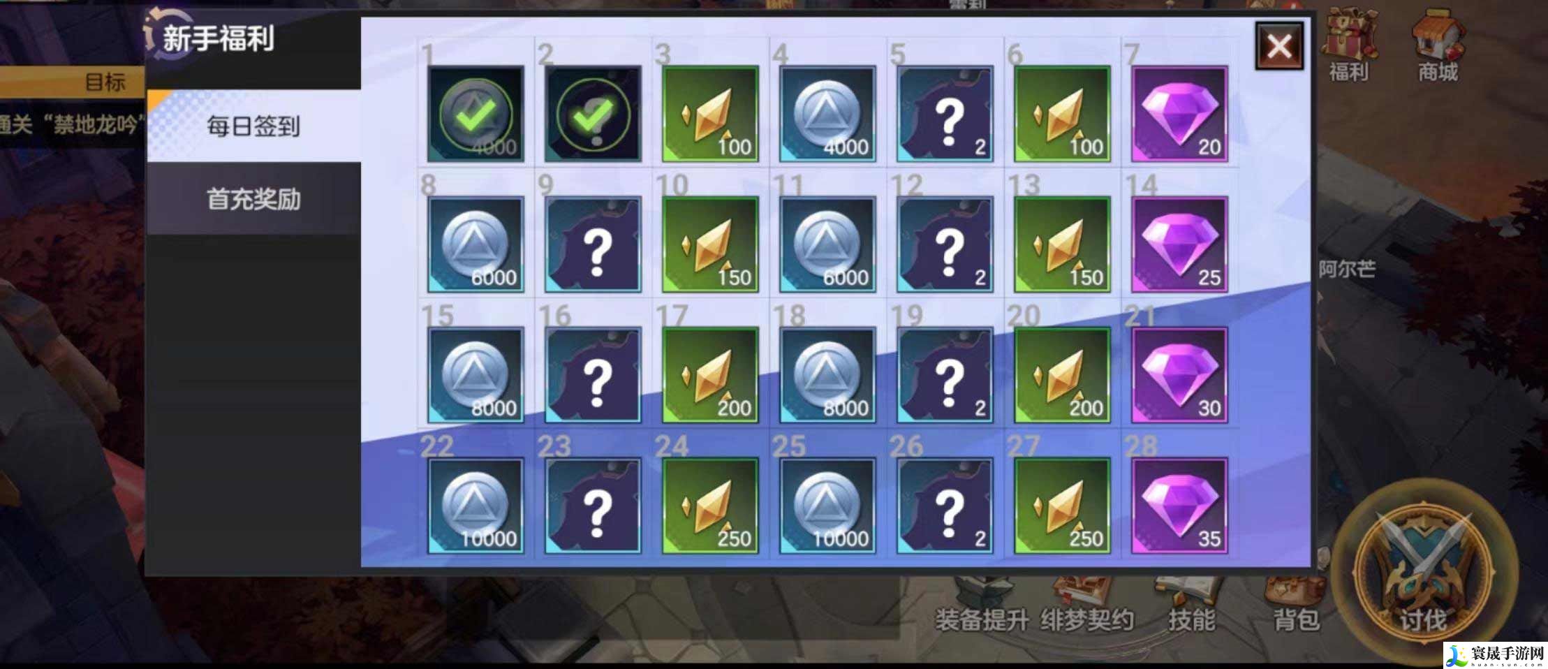 “福利”中,进行每日签到,可领取紫钻、银币、契约石以及能量碎片等物资,每天记得领取哦~