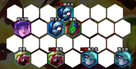 4、三星后就拉人口,六裁决就吃,几乎不怕任何阵容,拥有爆炸输出和控制能力。