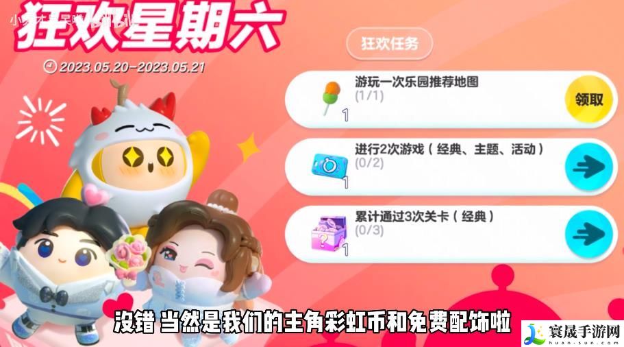 2、狂欢星期六正好会遇到520,蛋仔派对会开启专属的主题【甜蜜暴击】,还有机会获得彩虹币、保护卡哦;