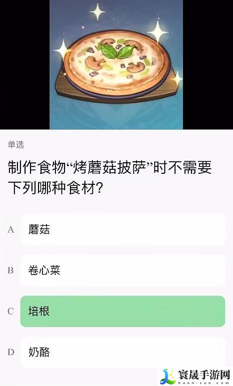 16、制作“烤蘑菇披萨”时不需要下列哪种食材? 答:C、培根