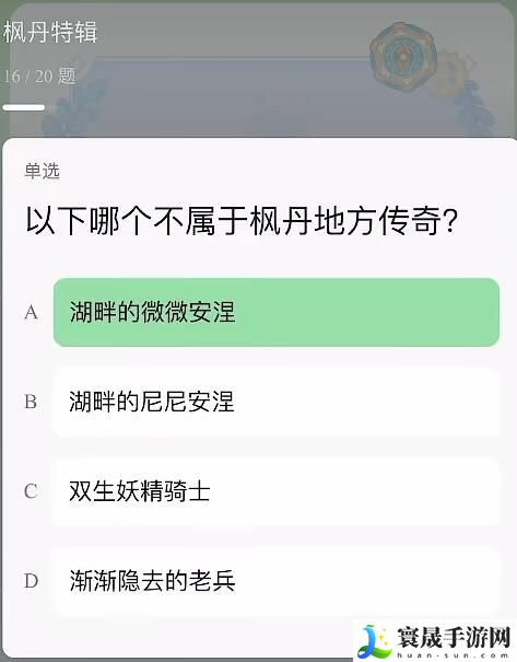16、以下哪个不属于枫丹地方传奇? 答:A、湖畔的微微安涅