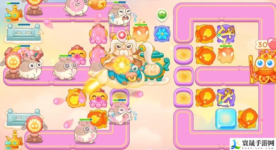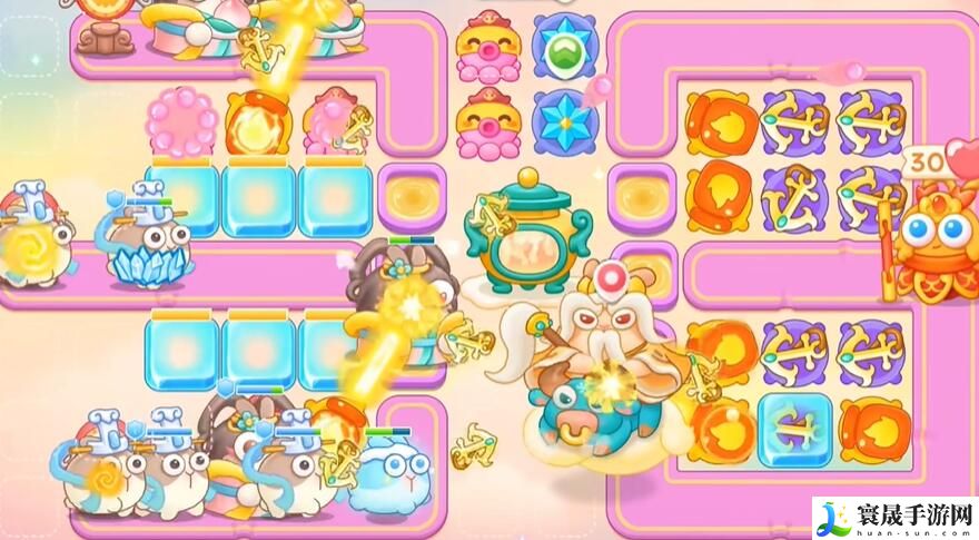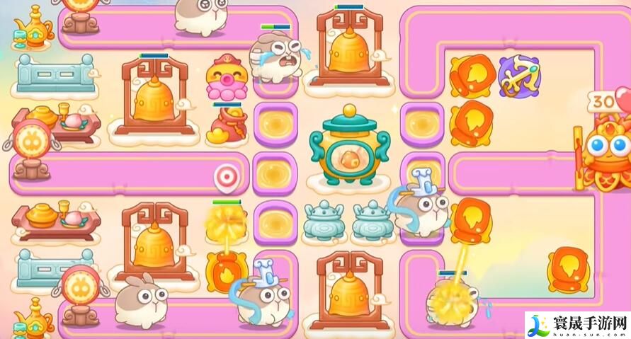 11、具体炮塔如下,冰冻兔出来中间卖了,之后左下换冰冻留兔子,追着老君买火。