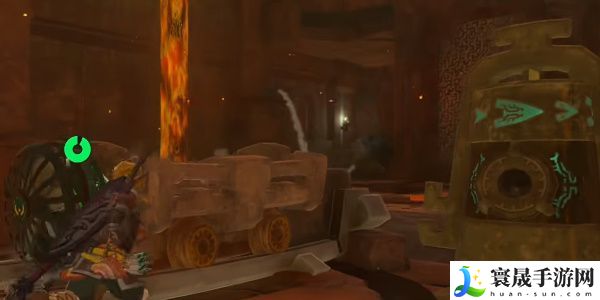 4、我们攻击右侧的机关可以调整轨道车的方向,然后跳上去启动。