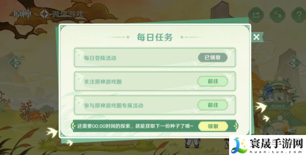 2、种子需通过采集获取,每1分钟可在「每日任务」中手动采集一份,完成「每日任务」中的指定任务则可以获得更多种子。