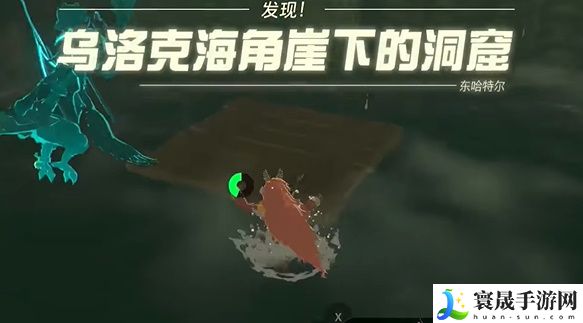 2、到达最下方的时候会提示这里是乌洛克海角崖下的洞窟,前面是会有一个木板,玩家需要上这个木板,随后是跟着水流移动。