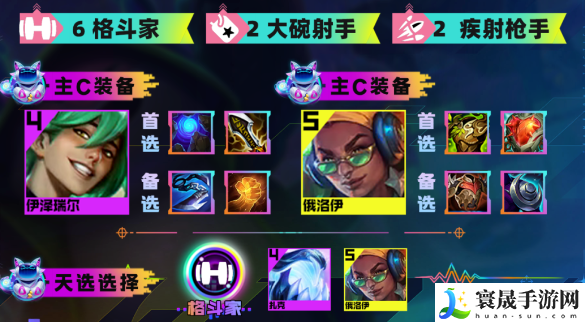 2-1拉4人口,2-5拉5人口,前期以4格斗2枪手羁绊打工过渡,优先考虑做日炎斗篷、羊刀、狂徒铠甲这些能够打连胜的装备!