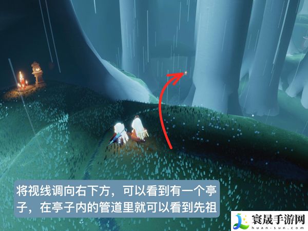 2、朝着左边有蜡烛堆的树桩飞过去,底下有一个洞穴。