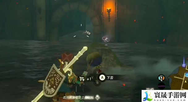 4、进来后这里是有水,玩家是需要从水中游到石板上,然后是看到这里的通道。