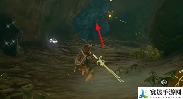 1、首先是原路出去,然后是往左边移动,这里是有蓝色的石头在这里挡路,然后是需要将其破开,这个石头比较坚固是需要多炸几次才行。