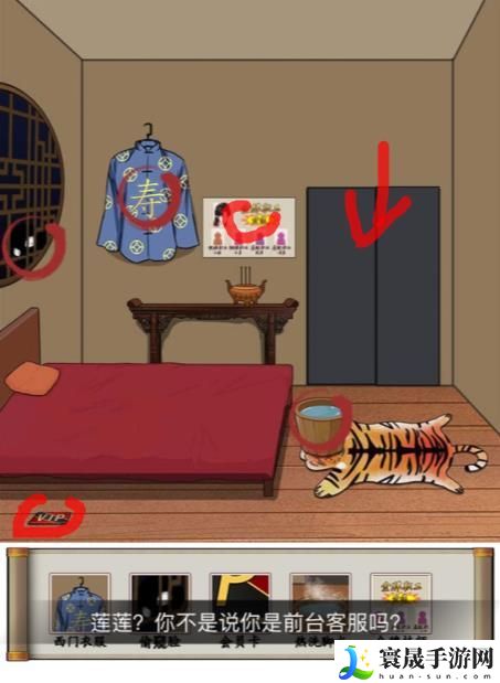 找到如图所示的这些物品,并标注出来,最后我们点击电梯门就可以来到第三个场景中了;