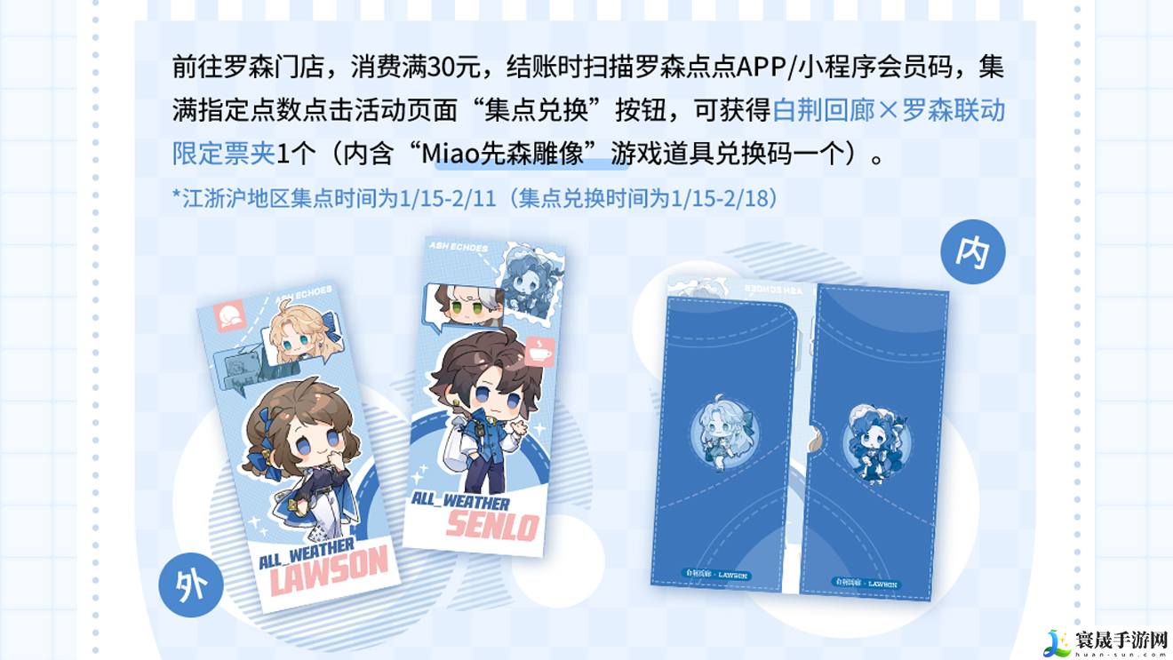 全国集点活动同步开启,活动期间,监督们在全国6000+罗森门店内购物消费,结账时扫描罗森点点APP或小程序会员码,即可根据集点规则获取相应点数。集满指定点数后可兑换【白荆回廊x罗森联动票夹】+【限定联动家具:Miao先森雕像】兑换码礼券1张,在游戏内兑换入口输入兑换码后,便能在游戏中获得该限定物品。