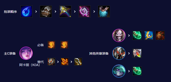 阵容角色:阿卡丽、卡尔萨斯、莫德凯撒、薇古丝、莉莉娅、妮蔻、阿木木、纳尔