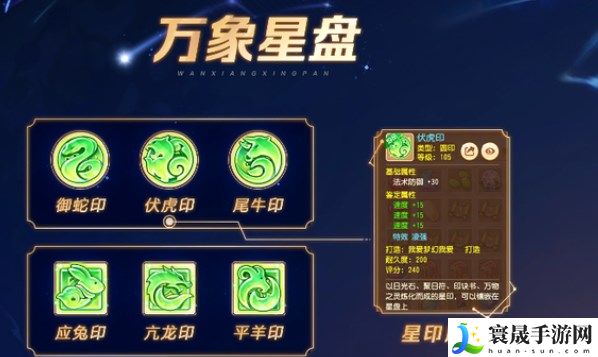首先万象星盘由6个星印组成,3个圆印,3个方印.玩家可以自行选择4个星印进行镶嵌. (6选4)