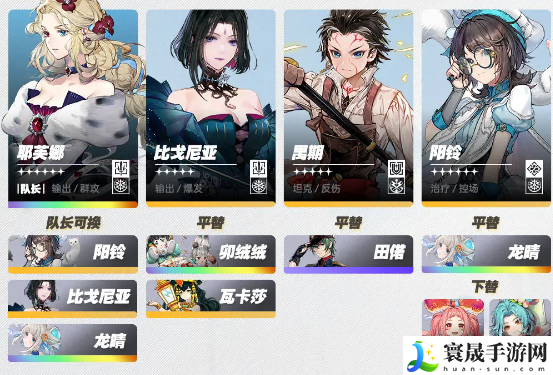 3、队长优选耶芙娜提高队伍整体伤害,次选阳铃或比戈尼亚等能提供激励的角色。