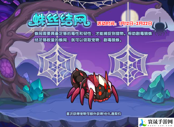 洛克王国剧毒狼蛛可以在1月12日-2月22日上线的蛛丝结网活动获得
