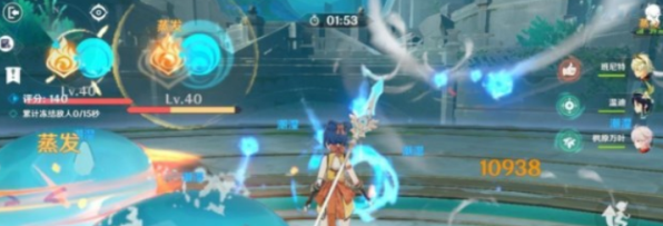 行秋夜兰开大,后台一直挂水,莱欧斯利冻结,促成暴击反应,香菱开发,搞蒸发反应,一波带走全都有。