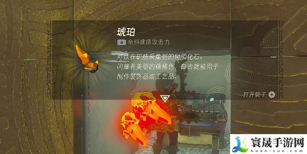 3、使用究极手将方块移动下来,就能看到后面的宝箱,打开后可以获得【琥珀】。