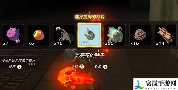 2、朝着左侧道路一直往里走,利用光亮花的种子提供视野,然后我们可以看到左侧墙壁上有一个石块。