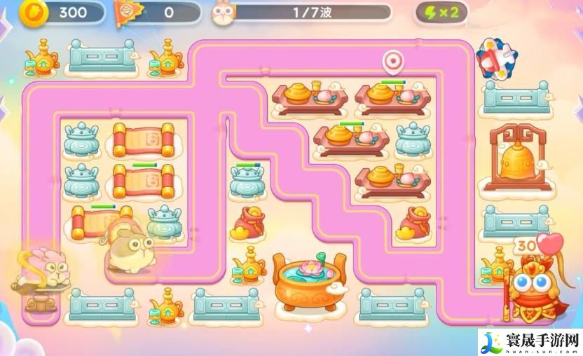 保卫萝卜4周赛5月13日开局我们可以在右上方放一个三级飞机先用来打木桌,等兔子来了再防守,然后一步步向左边扩张,今天的主要布局使用火瓶然后搭配飞机、保龄球和雷达来打,下面我们来看看具体的无伤通关图文教程吧!