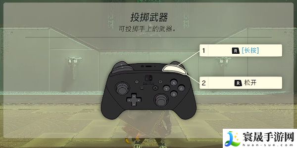 2、根据游戏提示,我们只需要装备可投掷的武器后,长按【R】键,瞄准后松开就能完成投掷。